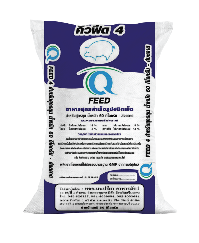 อาหารสุกรขุน 14% Protein สำหรับสุกรขุน น้ำหนัก 60 กิโลกรัม ถึง ส่งตลาด คิว ฟีด 4 Q Feed 4