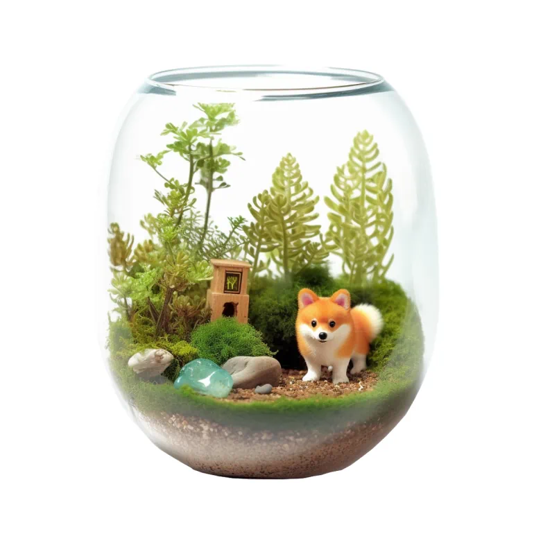 สวนขวดแก้วพร้อมหมาคอร์กี้